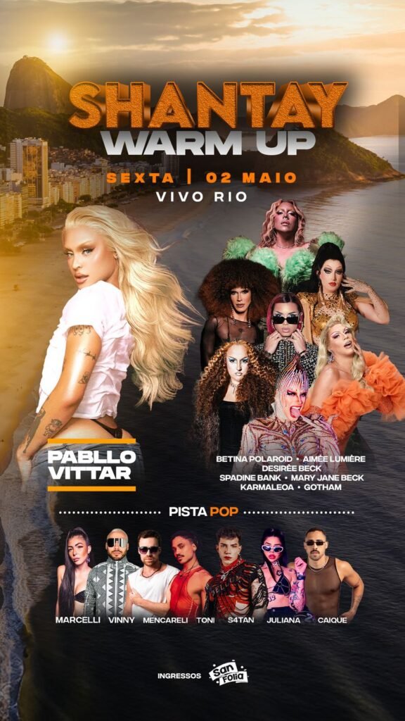 O coletivo drag baiano SHANTAY, composto por Aimée Lumière, Mary Jane Beck, Gotham e Spadina Banks, estreia a festa no Rio de Janeiro no dia 2 de maio, na Vivo Rio, em uma edição que promete aquecer os cariocas e turistas para o show de Lady Gaga na Praia de Copacabana.